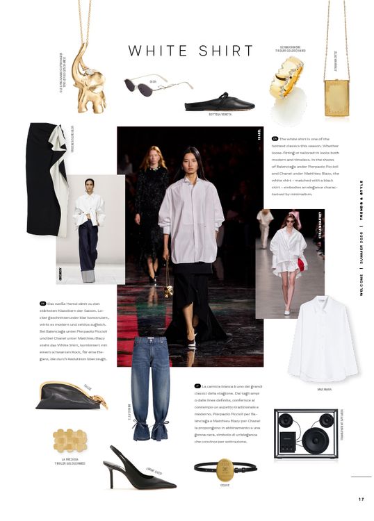 Das weiße Hemd zählt zu den stärksten Klassikern der Saison. Locker geschnitten oder klar konstruiert, wirkt es modern und zeitlos zugleich. Bei Balenciaga unter Pierpaolo Piccioli und bei Chanel unter Matthieu Blazy steht das White Shirt, kombiniert mit einem schwarzen Rock, für eine Eleganz, die durch Reduktion überzeugt.