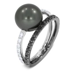 750 / 18 kt oro bianco lucido, 750 / 18 kt oro bianco placcato nero lucido, 1 perla tahiti Ø 10,5mm, Diamanti 0,33ct D/VVS1 taglio brillante... -